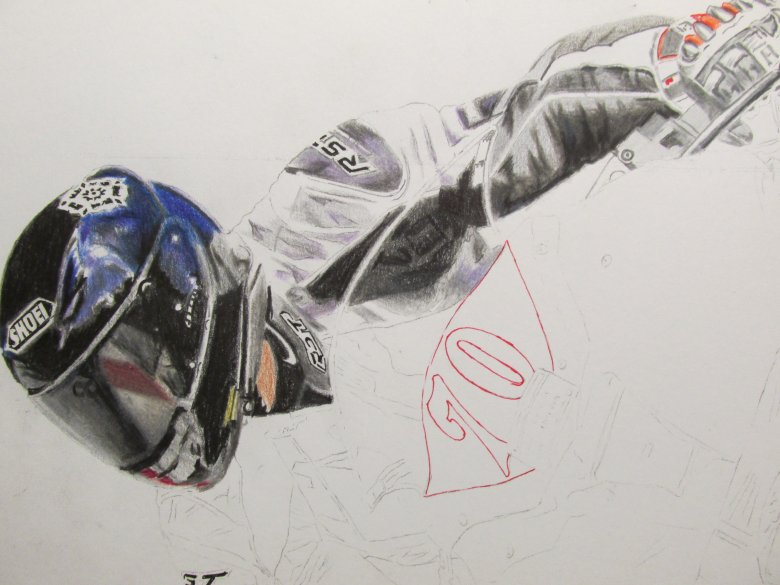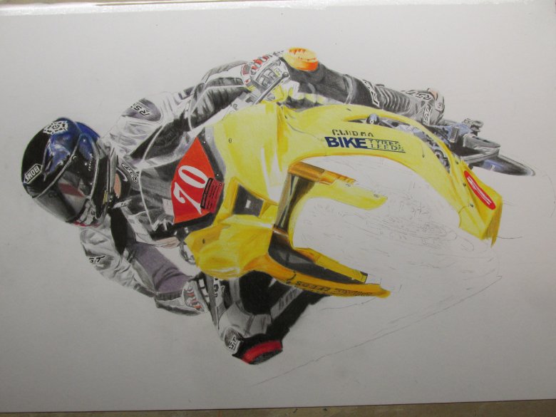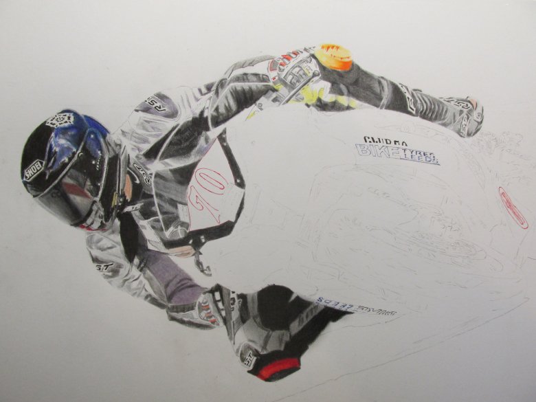 a typical Motorbike Commission I always start with the Helmet, if its a portrait I always start with the eyes, a Football stadium I always start with the roof, sorry…