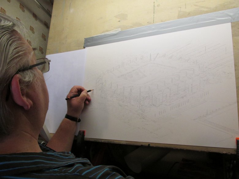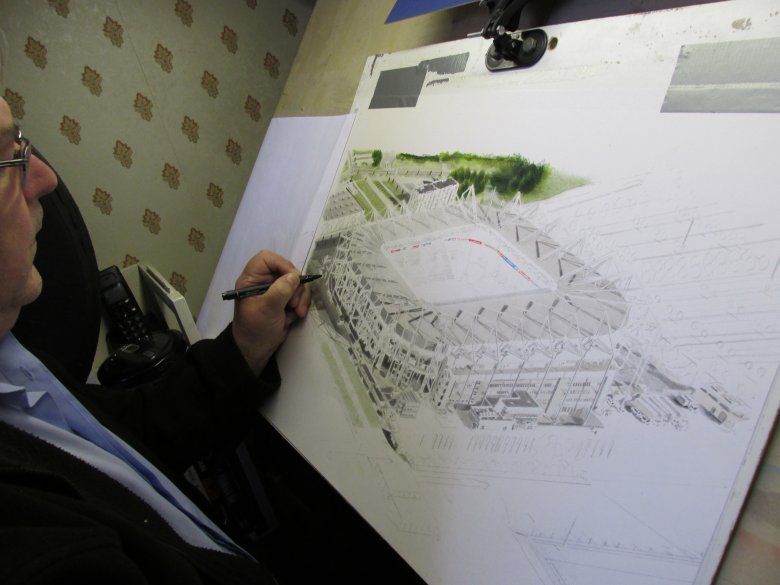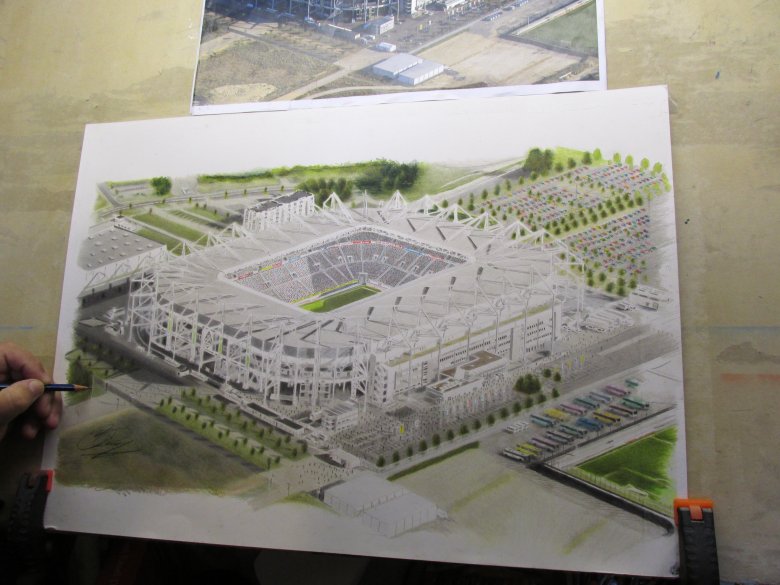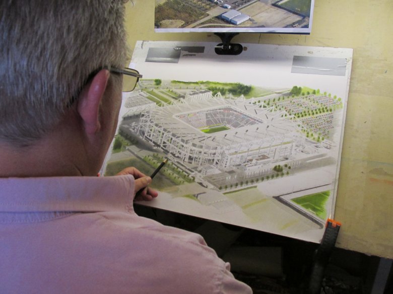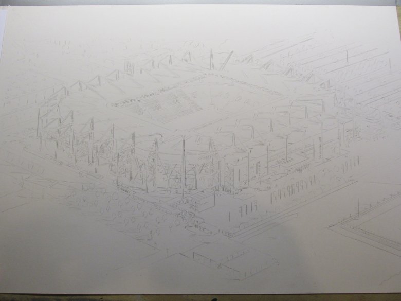 one of a series of Sporting Stadiums in my portfolio, the attached image is where it all starts from a few pencil out lines, if you look carefully most of…