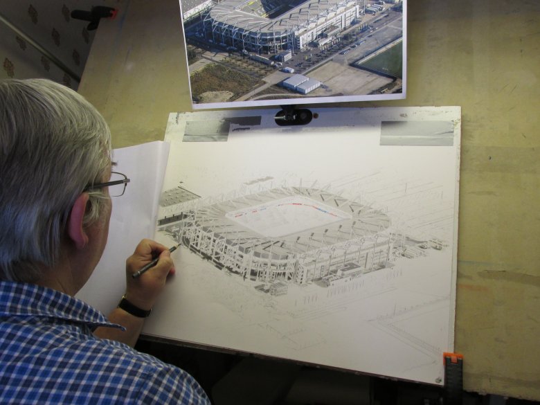 now the fun starts, with all my Stadium Illustrations I always start with the Roof, most Stadiums have roofing struts, I first of all check to see the pattern the…